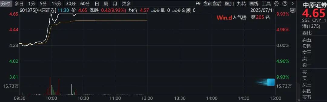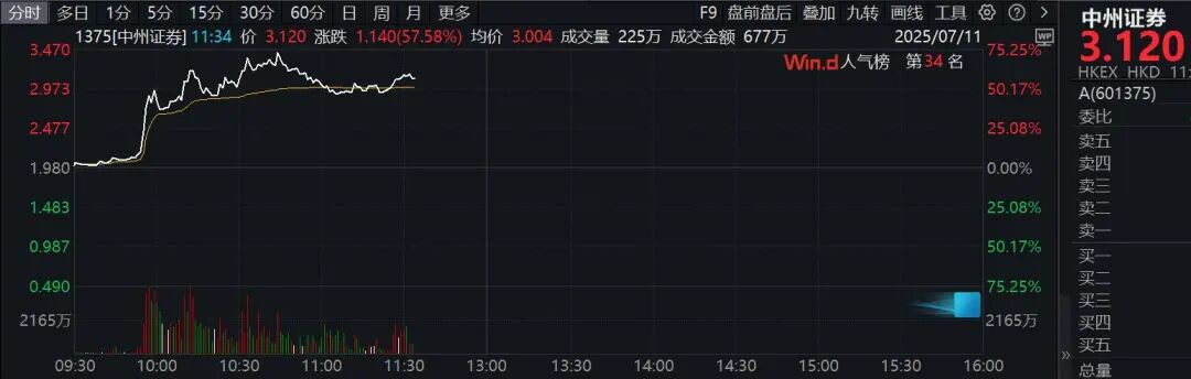 港股金融股也跟随大涨,恒生保险主题指数、港股通银行保险指数、港股通中国金融指数等均涨超2%。中州证券盘中放量飙升逾75%,南华金融、立桥证券控股最高均涨超60%,汇盈控股、兴证国际、国联民生等也涨超20%。
